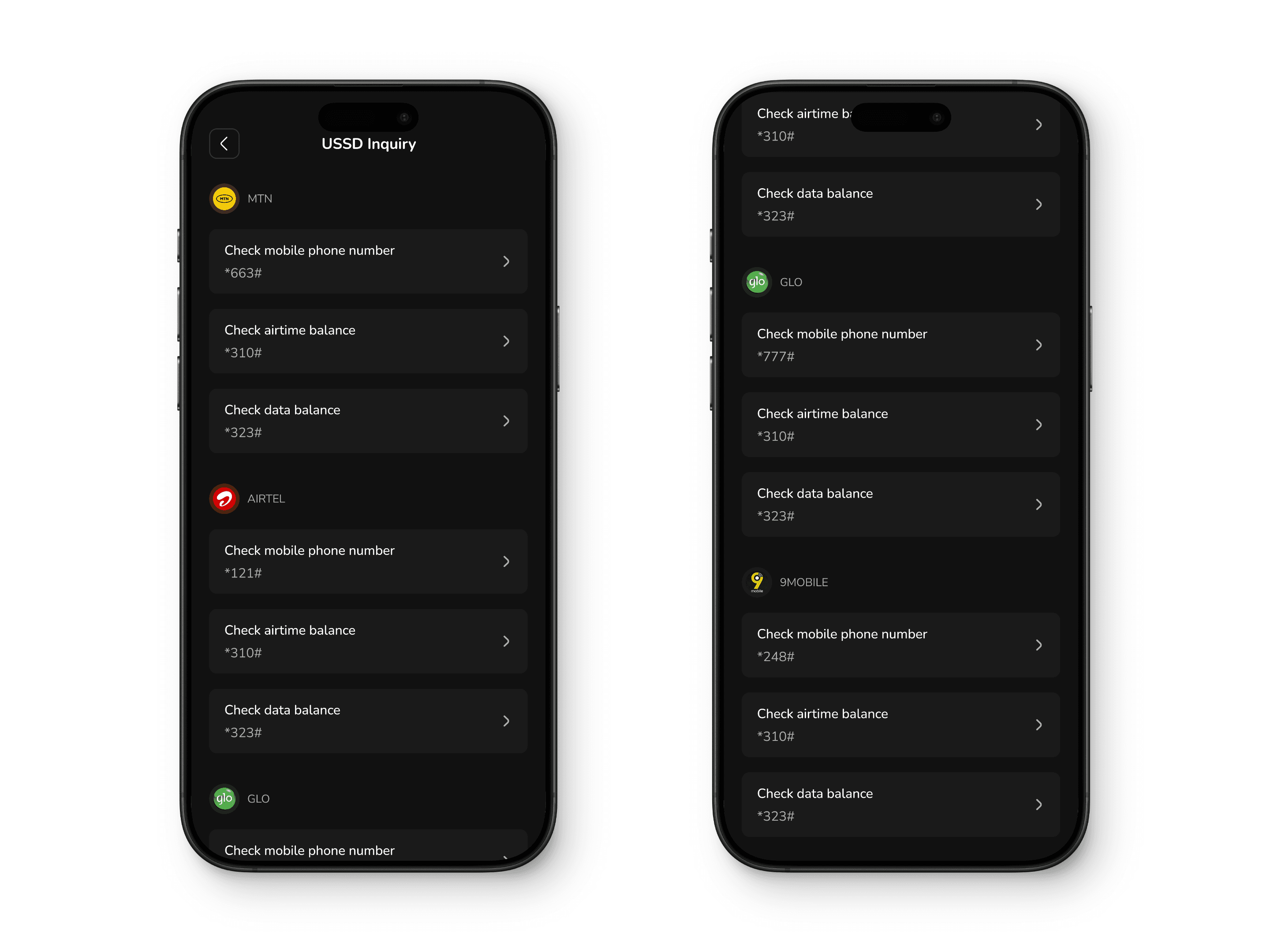 Checking their airtime and data balance easily is important to some customers, hence the need to add a USSD inquiry feature to auto dial the respective codes.